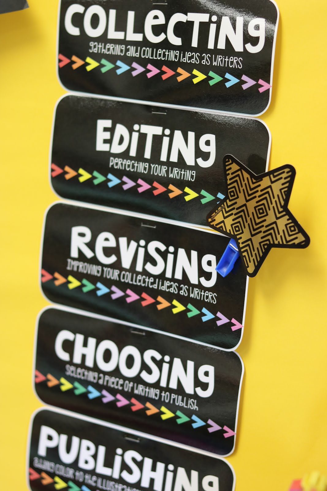 I even accented our writing process stage by attaching a star to a clothespin. These give my students a clear understanding of what they are responsible for that day as a writer.